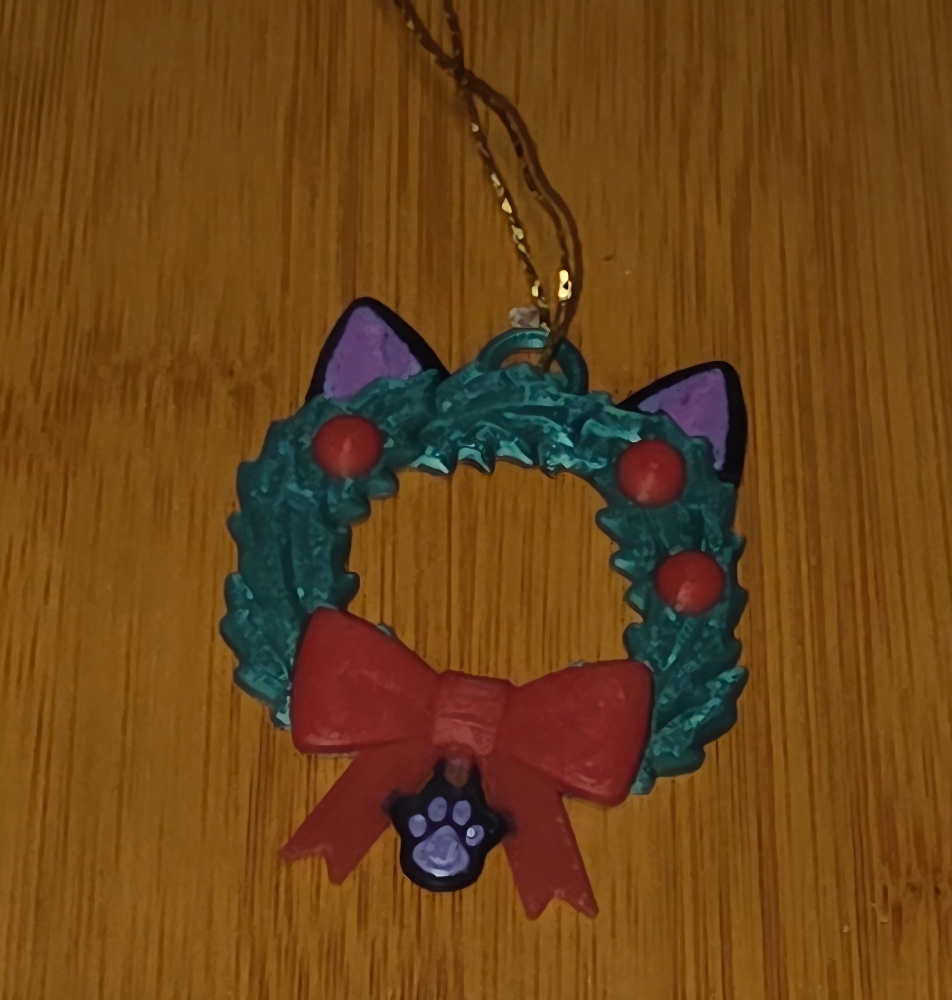 This ornament is 3D printed using PLA (Polylactic Acid) filament.