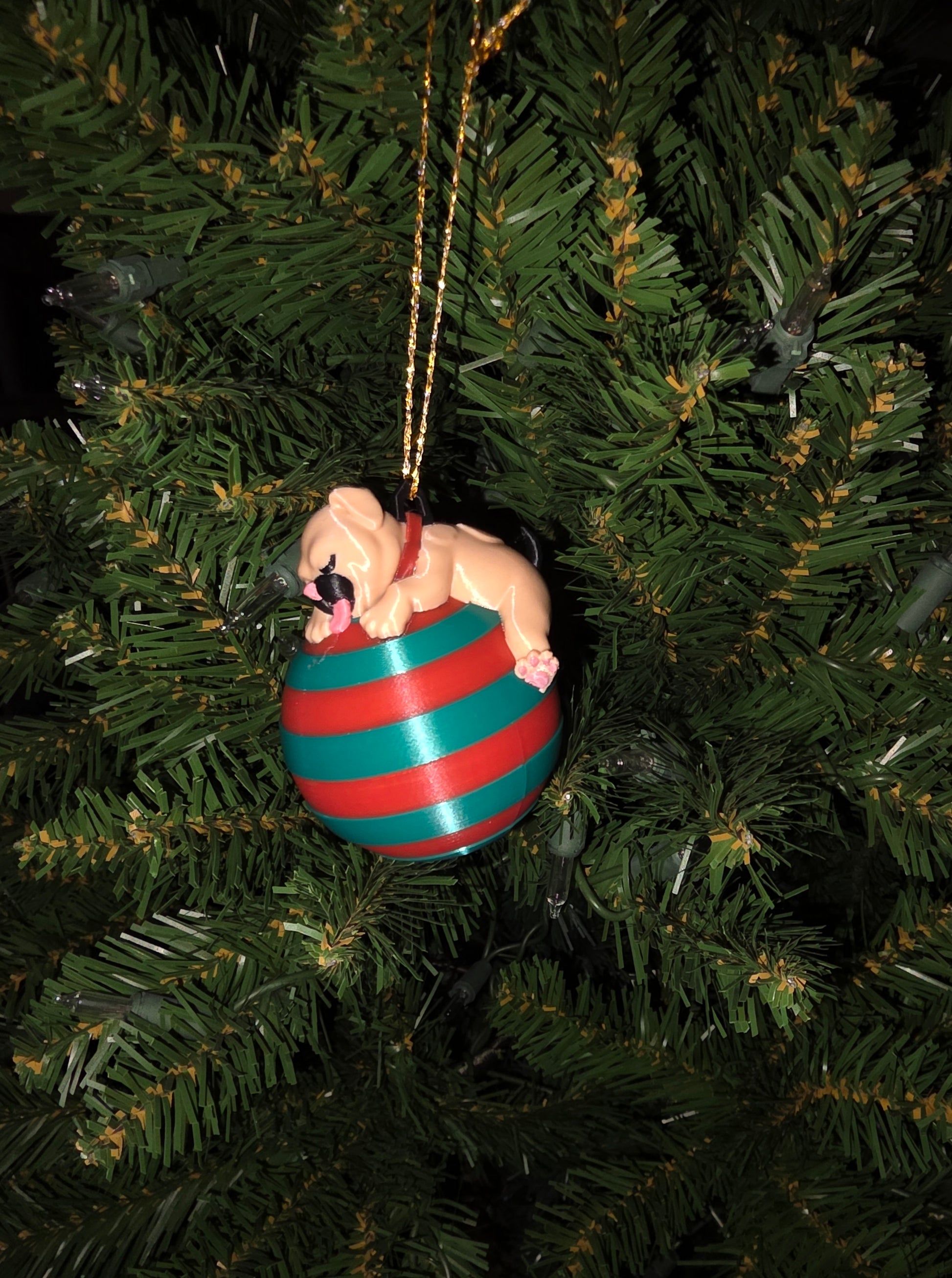 This ornament is 3D printed using PLA (Polylactic Acid) filament.